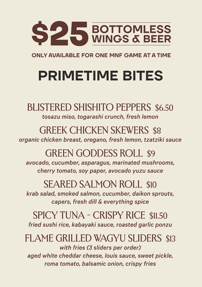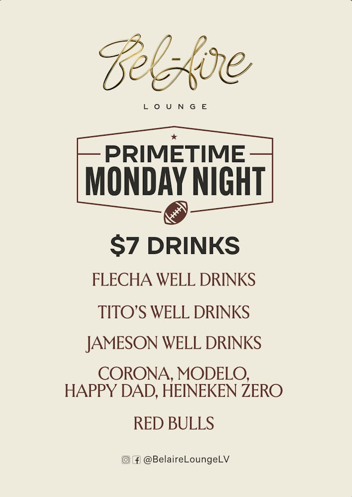 Get ready for the ultimate game day experience at Bel-Aire Lounge with Primetime Monday Night Football. Every Monday, we’re serving up unbeatable specials: $25 bottomless wings & beer, plus $7 drink specials and 50% off our Primetime Bites menu during game hours. Whether you’re a die-hard fan or just in it for the food and drinks, Bel-Aire is the place to catch every play.